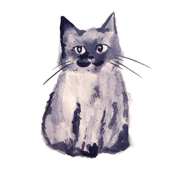Smol Kitten Cute Cat Illustration Ink And Pencil Original Drawing By Australian Artist Black White And Grey