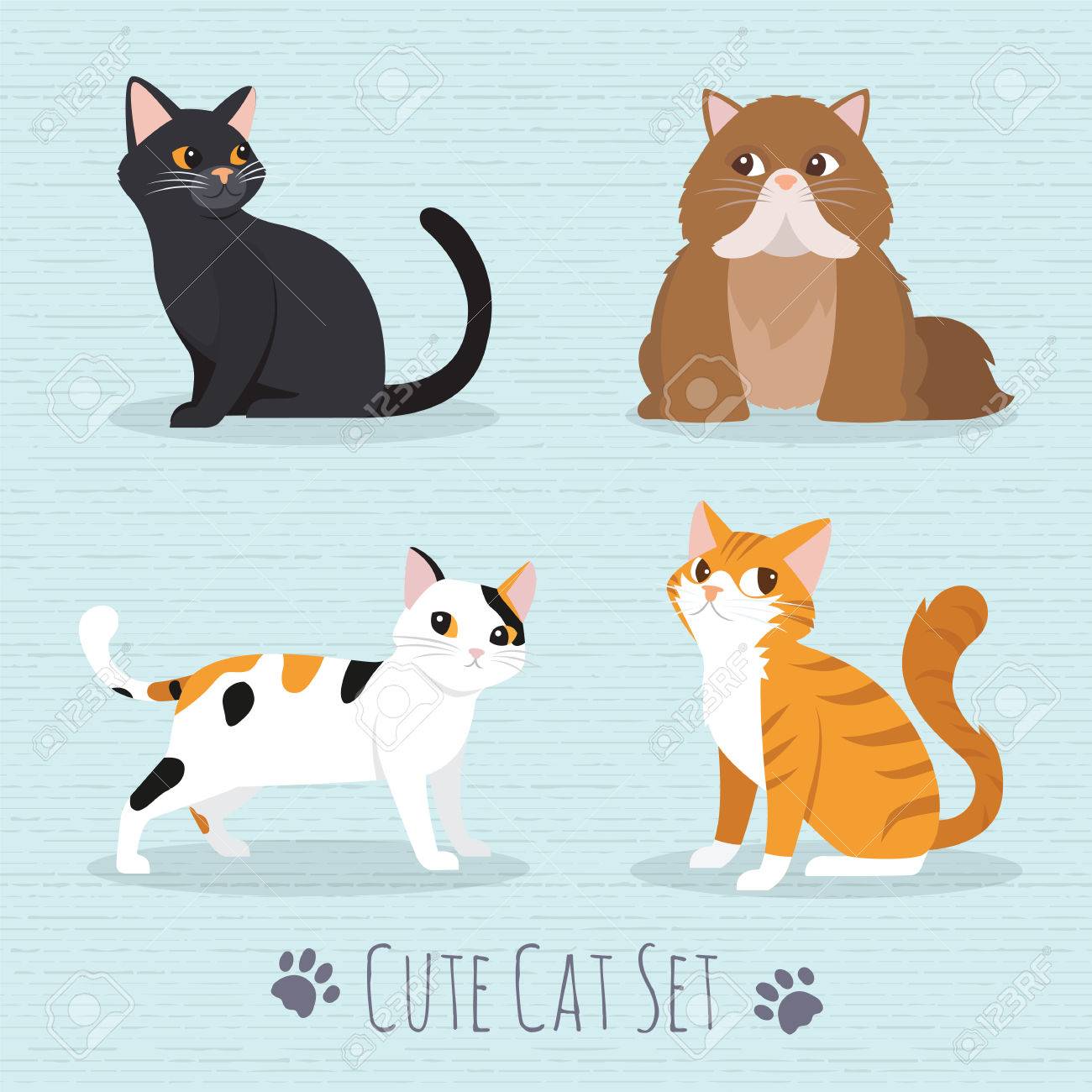 Cat Set With White Cat Grey Cat Orange Cat Brown Cat Cute