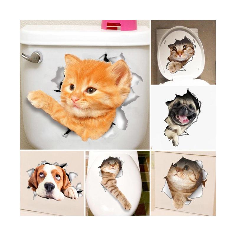 Bluelans D Cute Cat Dog Pattern Toilet Lid Cover Decal Wall Art Sticker Bathroom Home Decor
